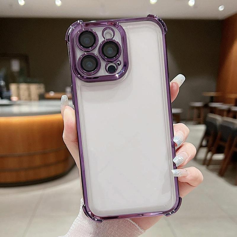 For iPhone 13 Pro Electroplating Space TPU Four-corner Shockproof Phone Case with Lens Film(Purple)
