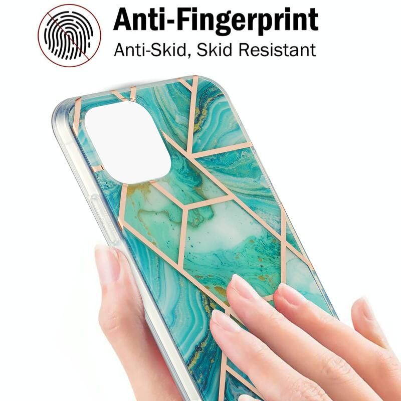 For iPhone 13 Pro Electroplating Splicing Marble Flower Pattern Dual-side IMD TPU Shockproof Case (Blue)