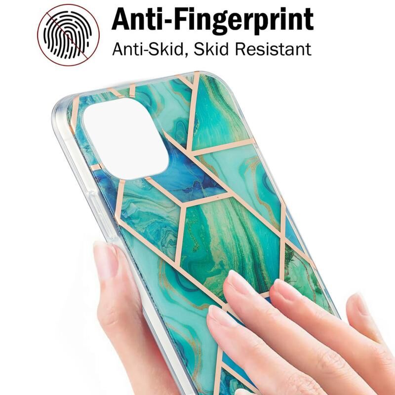 For iPhone 13 Pro Electroplating Splicing Marble Flower Pattern Dual-side IMD TPU Shockproof Case (Green)