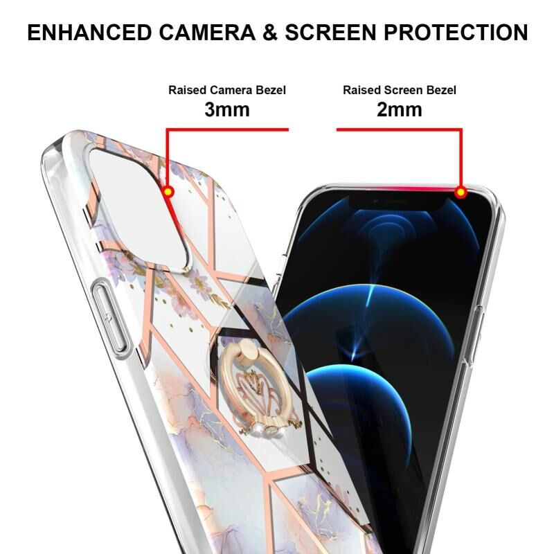 For iPhone 13 Pro Electroplating Splicing Marble Flower Pattern TPU Shockproof Case with Rhinestone Ring Holder (Imperial Crown)