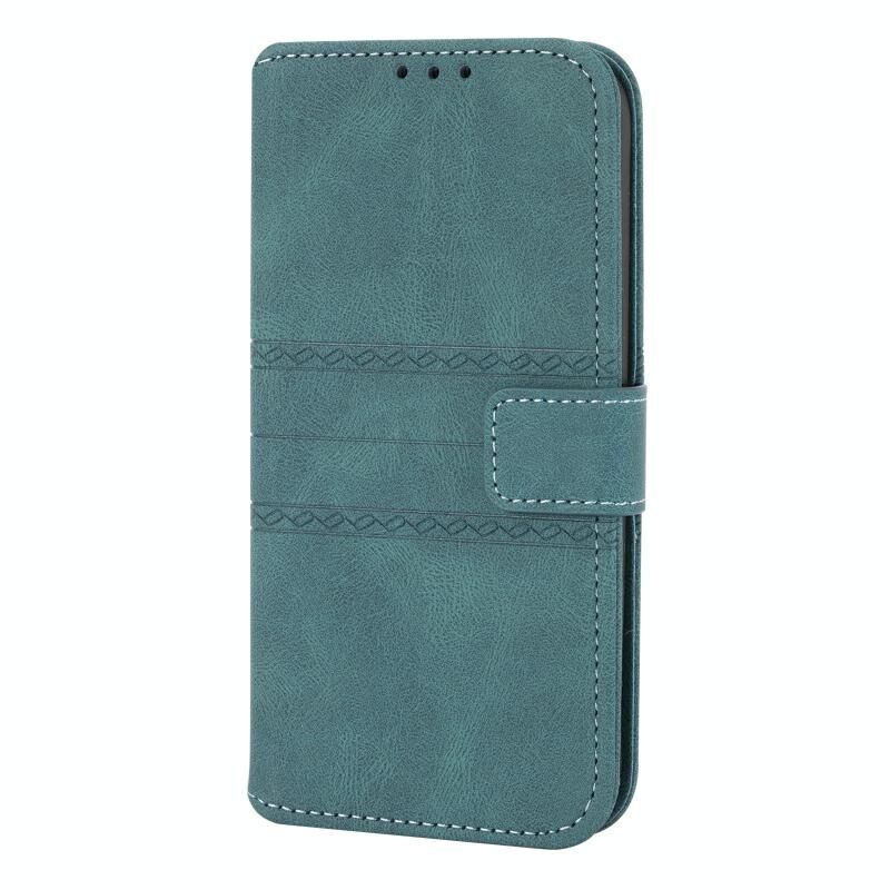 For iPhone 13 Pro Embossed Striped Magnetic Buckle PU + TPU Horizontal Flip Leather Case with Holder & Card Slot & Wallet & Photo Frame & Sling (Green)
