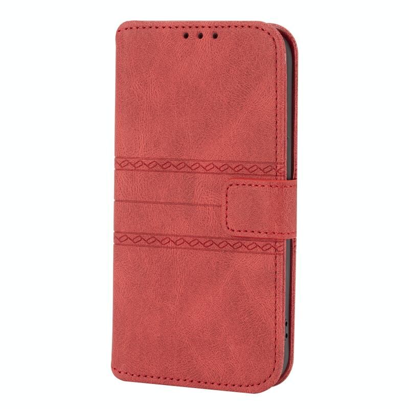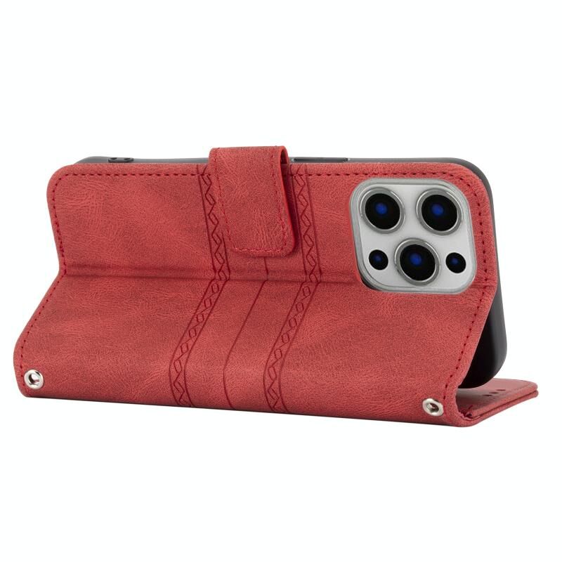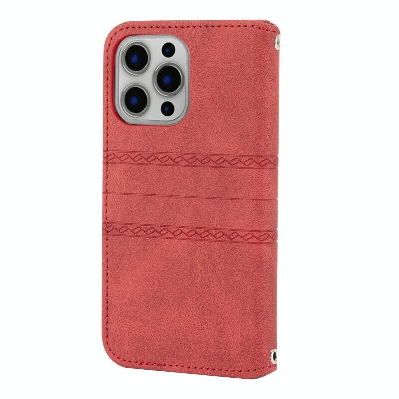 For iPhone 13 Pro Embossed Striped Magnetic Buckle PU + TPU Horizontal Flip Leather Case with Holder & Card Slot & Wallet & Photo Frame & Sling (Red)