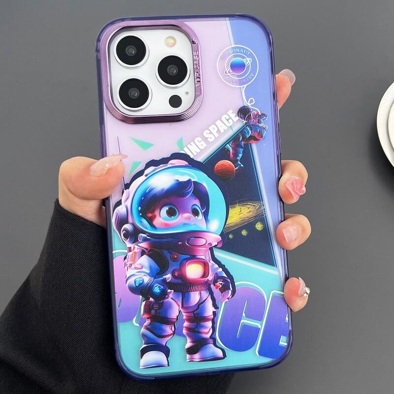 For iPhone 13 Pro Engraved Colorful Astronaut Phone Case(Small Purple)