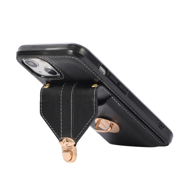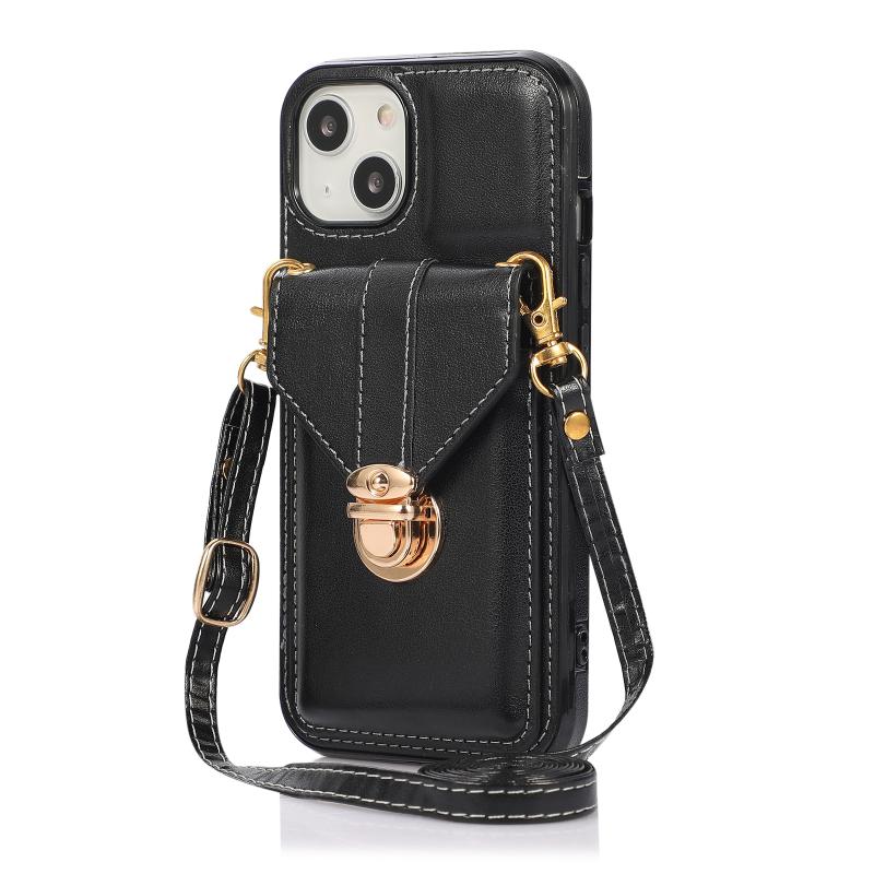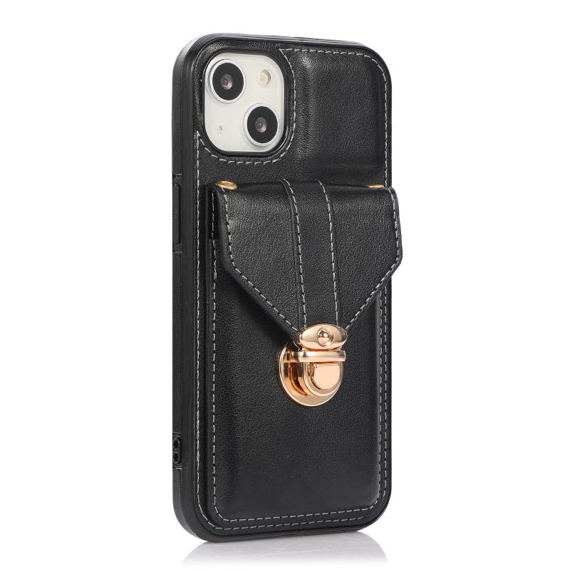 For iPhone 13 Pro Fashion Buckle Protective Case with Holder & Card Slot & Wallet & Lanyard (Black)