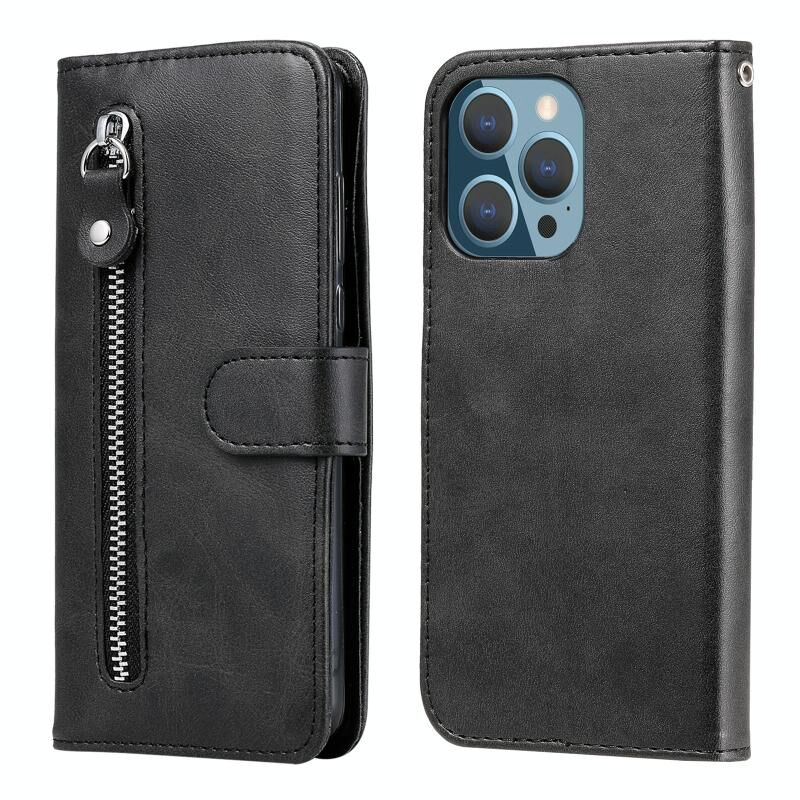 For iPhone 13 Pro Fashion Calf Texture Zipper Horizontal Flip Leather Case with Stand & Card Slots & Wallet Function (Black)