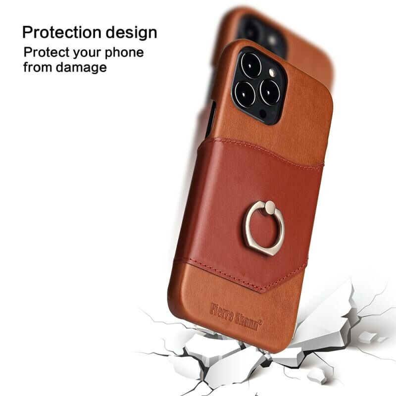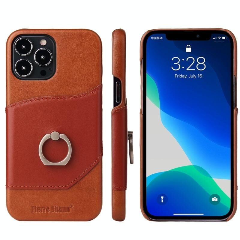 For iPhone 13 Pro Fierre Shann Oil Wax Texture Genuine Leather Back Cover Case with 360 Degree Rotation Holder & Card Slot (Brown) (FIERRE SHANN)
