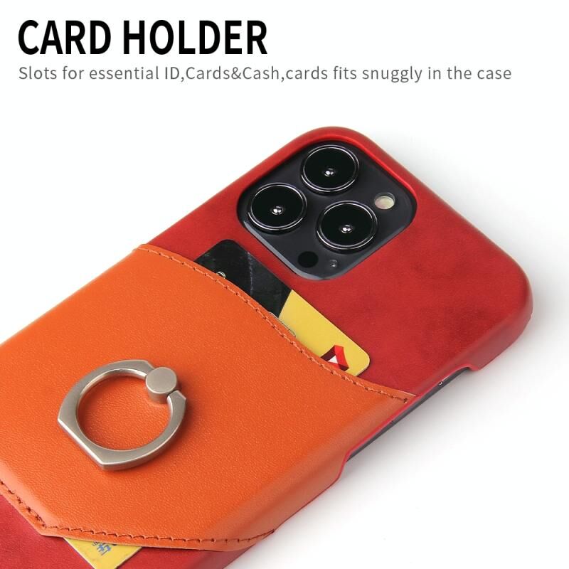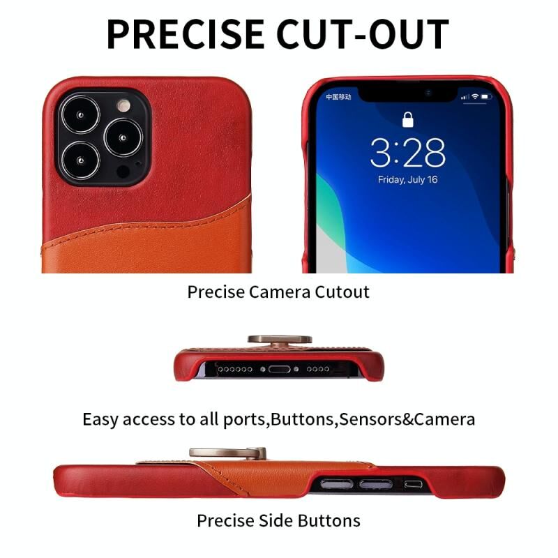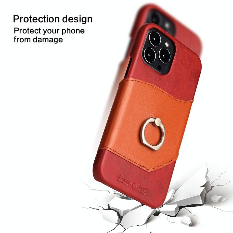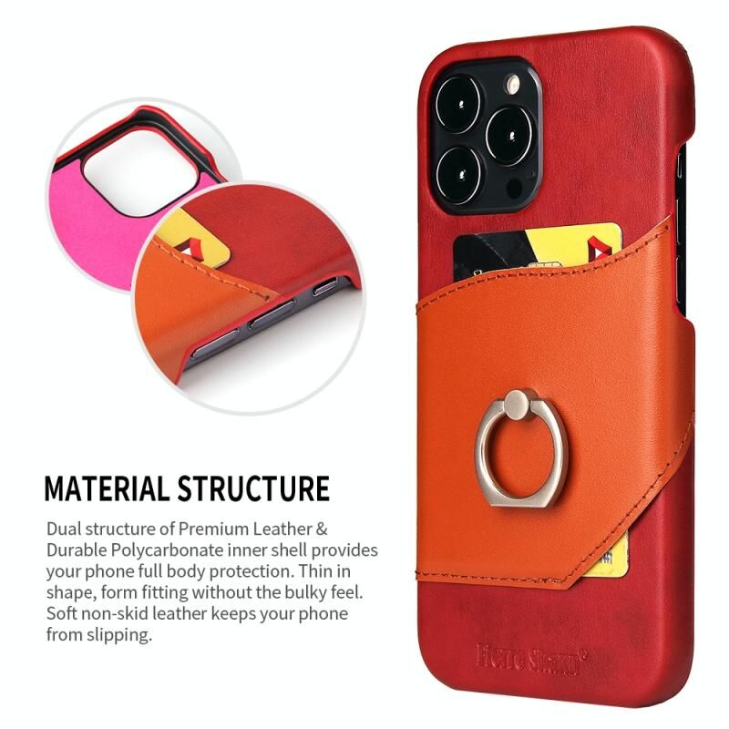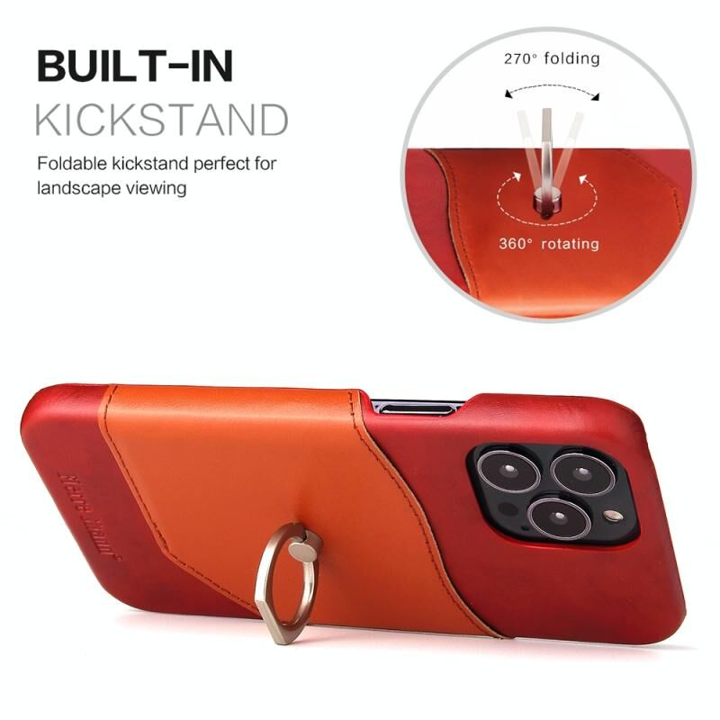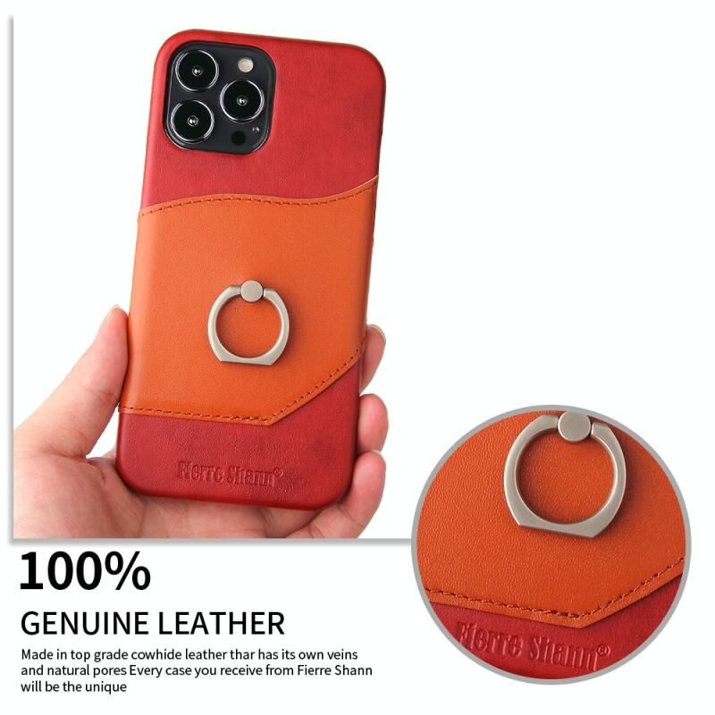 For iPhone 13 Pro Fierre Shann Oil Wax Texture Genuine Leather Back Cover Case with 360 Degree Rotation Holder & Card Slot (Red) (FIERRE SHANN)