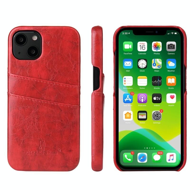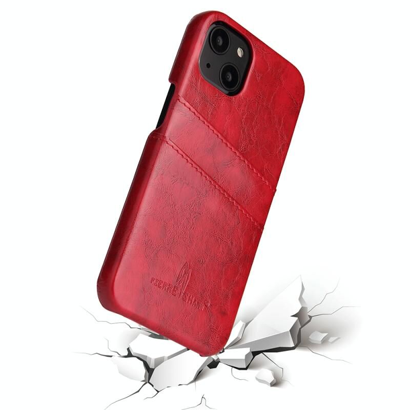 For iPhone 13 Pro Fierre Shann Retro Oil Wax Texture PU Leather Case with Card Slots (Red) (FIERRE SHANN)