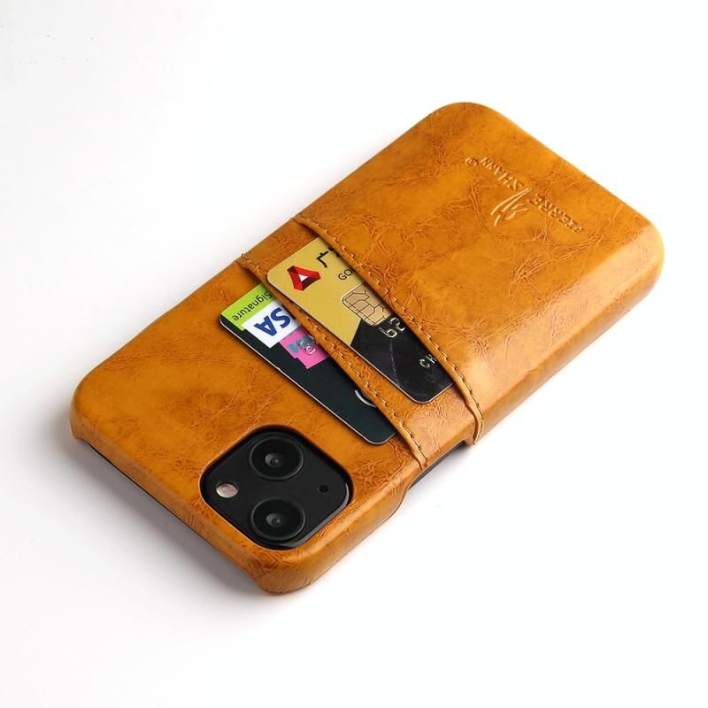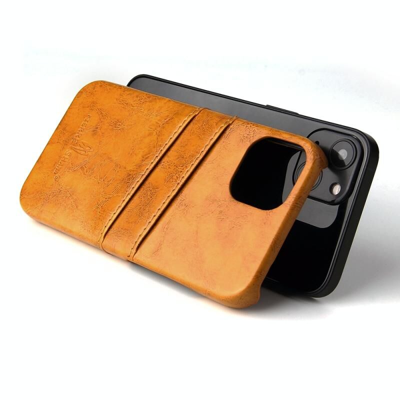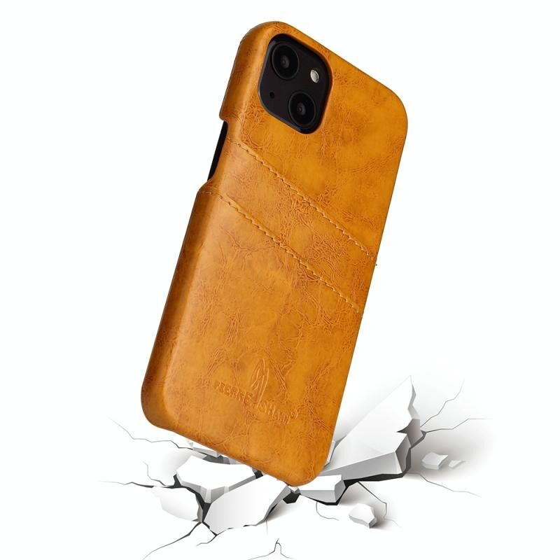 For iPhone 13 Pro Fierre Shann Retro Oil Wax Texture PU Leather Case with Card Slots (Yellow) (FIERRE SHANN)