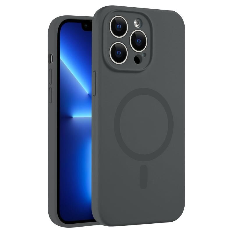 For iPhone 13 Pro Fine Hole Pure Color Liquid Silicone MagSafe Phone Case(Coal Grey)