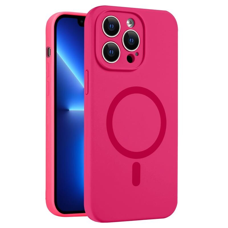 For iPhone 13 Pro Fine Hole Pure Color Liquid Silicone MagSafe Phone Case(Rose Red)