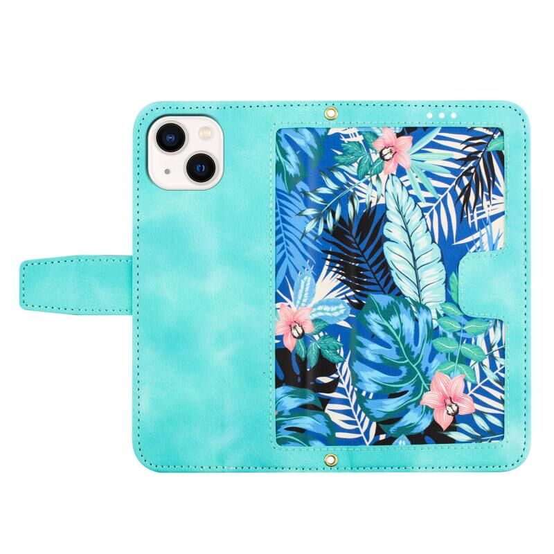 Θήκη τηλεφώνου από δέρμα με λουλουδάτο σχέδιο για iPhone 13 Pro με κορδόνι (Ανοιχτό Μπλε)