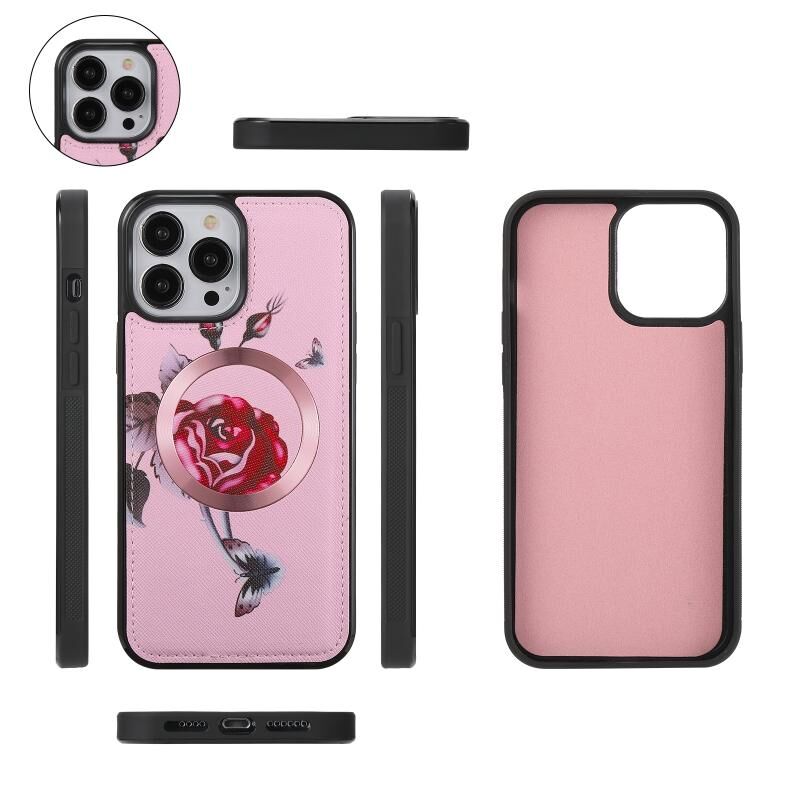 Θήκη τηλεφώνου για iPhone 13 Pro, λουλούδια, πολυλειτουργική, crossbody, με φερμουάρ, δερμάτινη, συμβατή με MagSafe (Μαύρο)