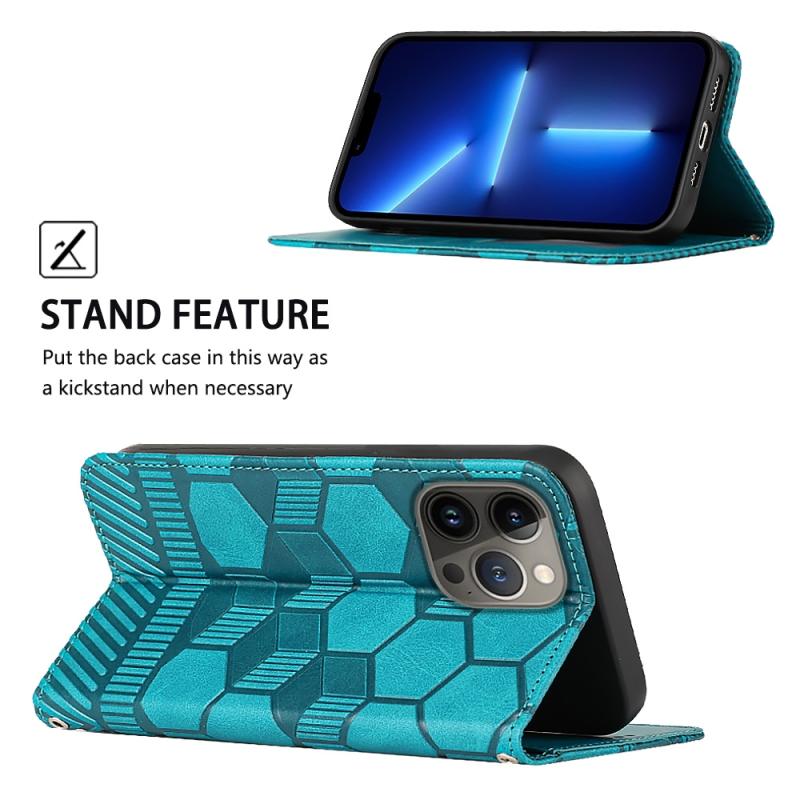 For iPhone 13 Pro Football Texture Magnetic Leather Flip Phone Case (Light Blue)