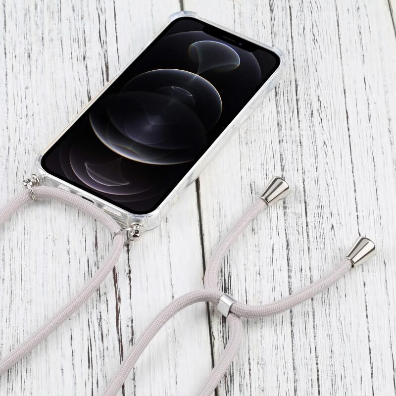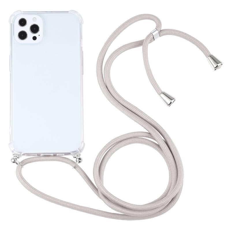 For iPhone 13 Pro Four-corner Shockproof Transparent TPU Protective Case with Lanyard (Apricot)