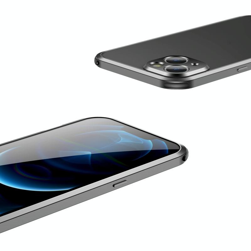 For iPhone 13 Pro Four Corners Shockproof Metal Frame Phone Case (Sierra Blue)