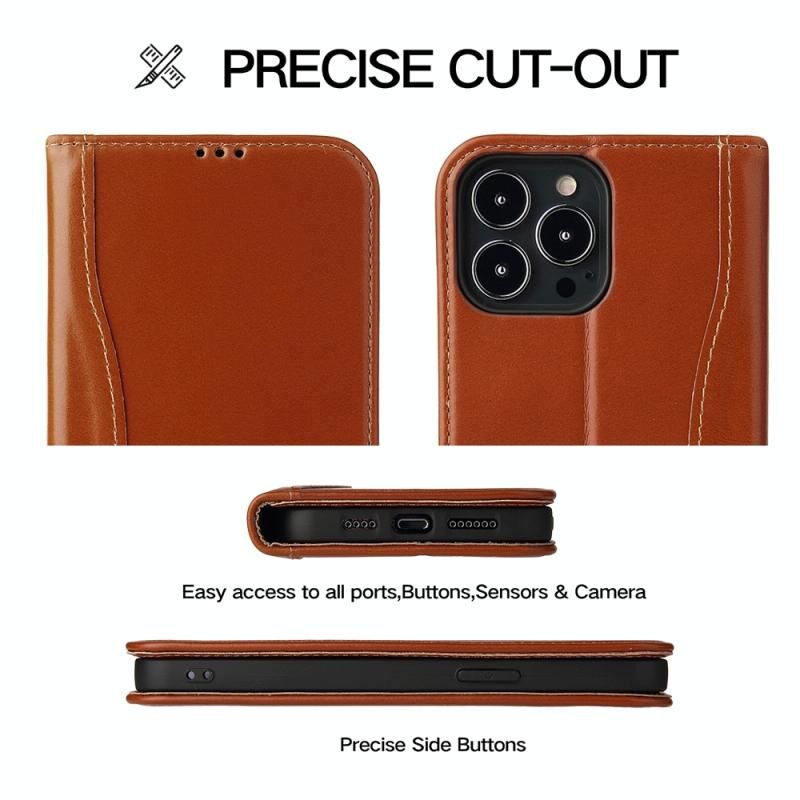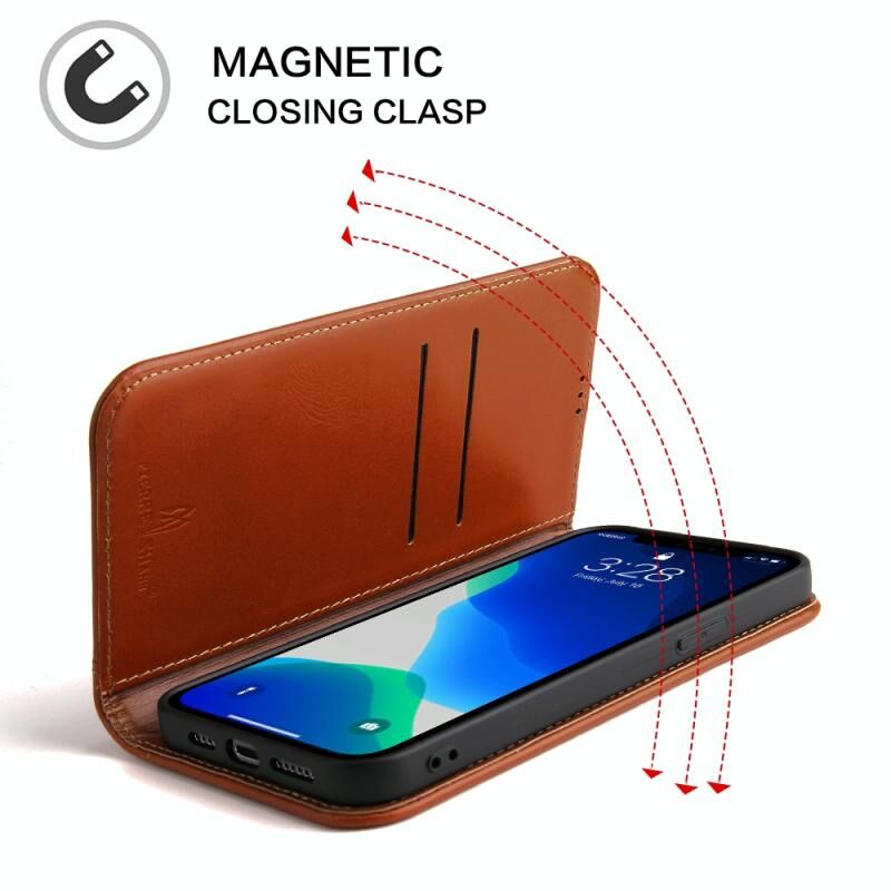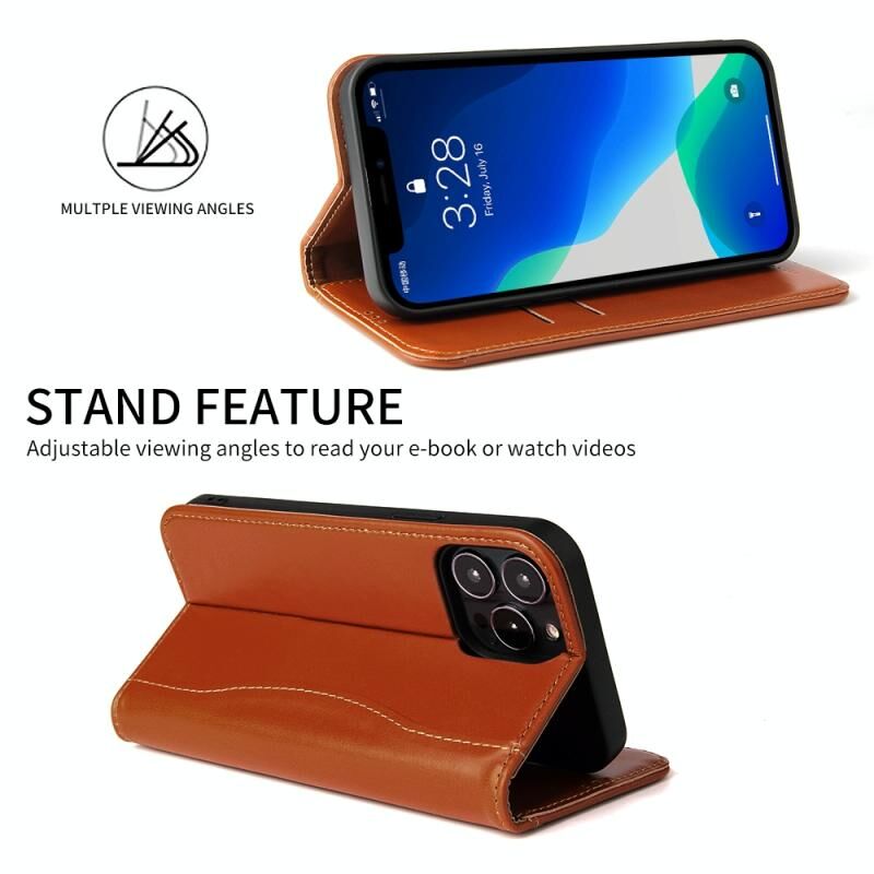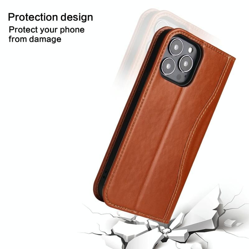 For iPhone 13 Pro Genuine Leather Horizontal Flip Leather Case with Holder & Card Slots & Wallet (Brown)