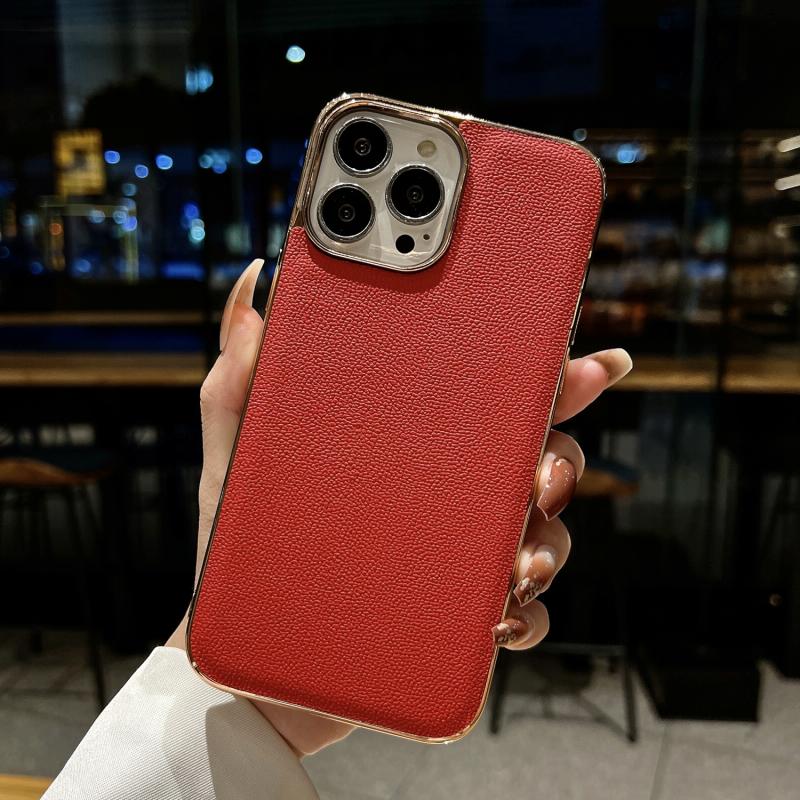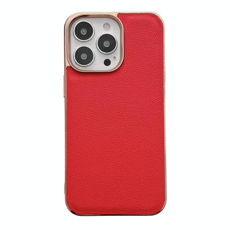 For iPhone 13 Pro Genuine Leather Luolai Series Nano Electroplating Phone Case (Red)