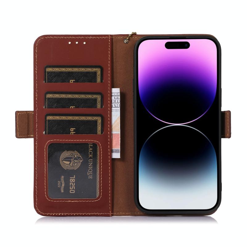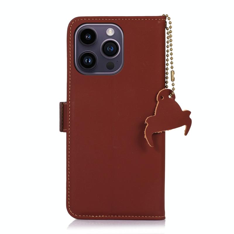 For iPhone 13 Pro Genuine Leather Magnetic RFID Leather Phone Case(Coffee)