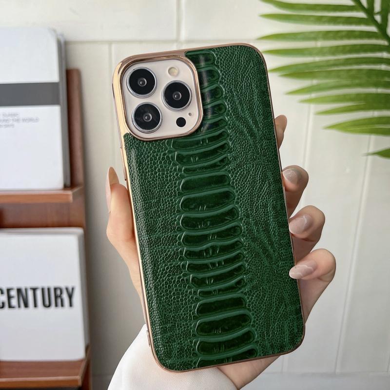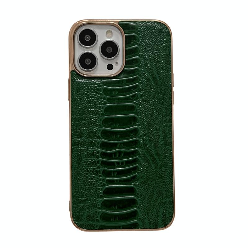 For iPhone 13 Pro Genuine Leather Pinshang Series Nano Electroplating Phone Case (Green)