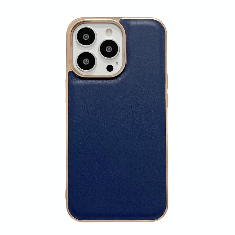 For iPhone 13 Pro Genuine Leather Xiaoya Series Nano Electroplating Phone Case (Blue)