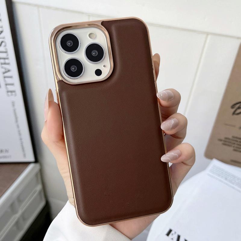 For iPhone 13 Pro Genuine Leather Xiaoya Series Nano Electroplating Phone Case (Coffee)