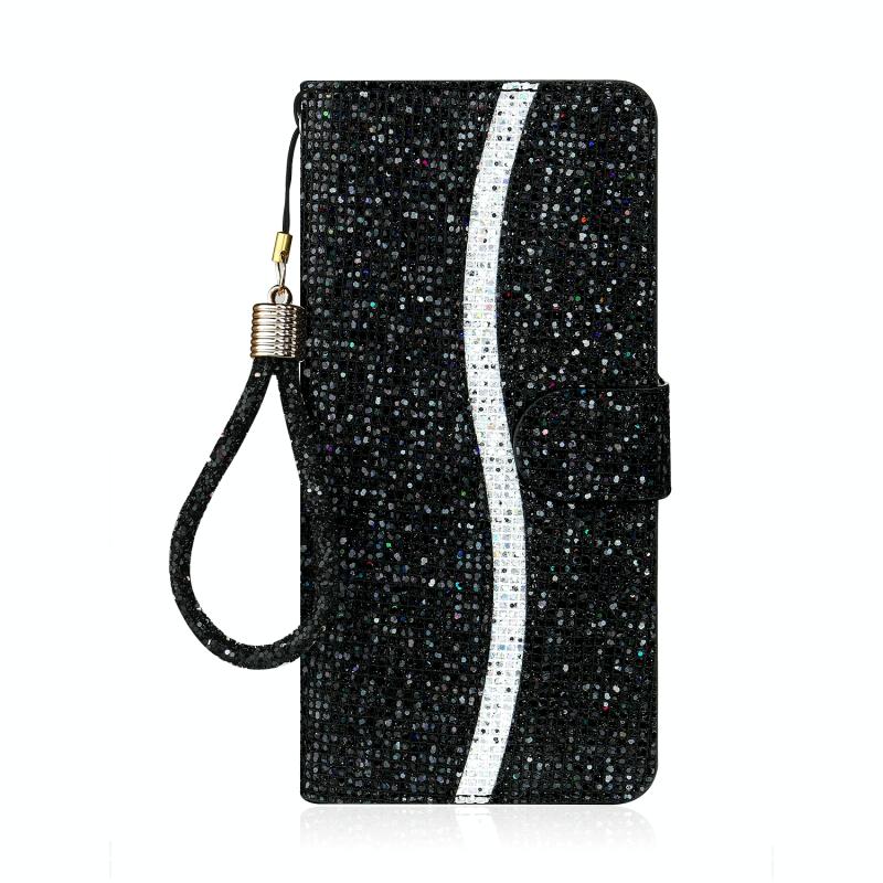 For iPhone 13 Pro Glitter Powder Horizontal Flip Leather Case with Card Slots & Holder & Lanyard (Black)