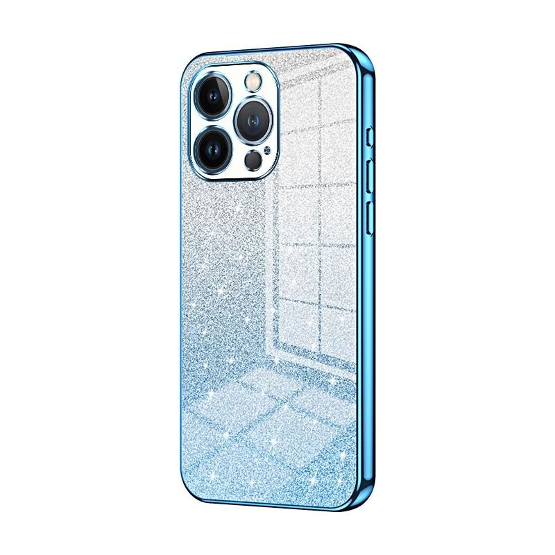 For iPhone 13 Pro Gradient Glitter Powder Electroplated Phone Case(Blue)