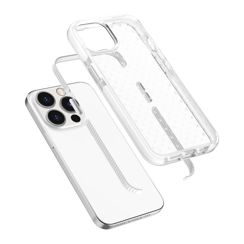 Θήκη κινητού τηλεφώνου για iPhone 13 Pro, διαφανής από TPU, με σχέδιο πλέγματος και αντικραδασμική προστασία (Λευκό)