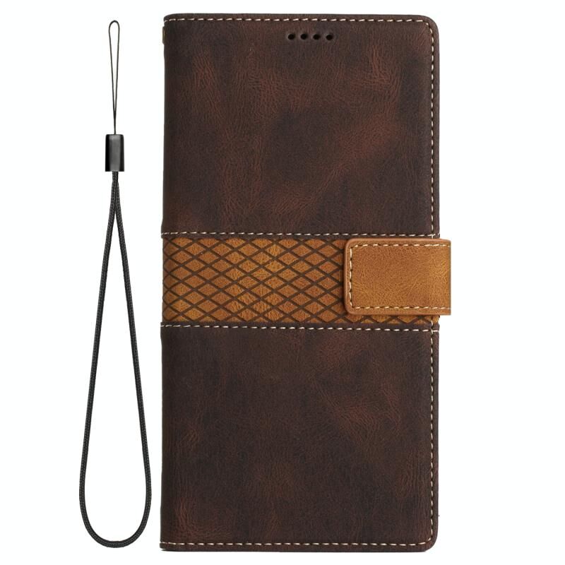 Θήκη τηλεφώνου από δέρμα με ραφή πλέγματος για iPhone 13 Pro με κορδόνι (Μπλε)