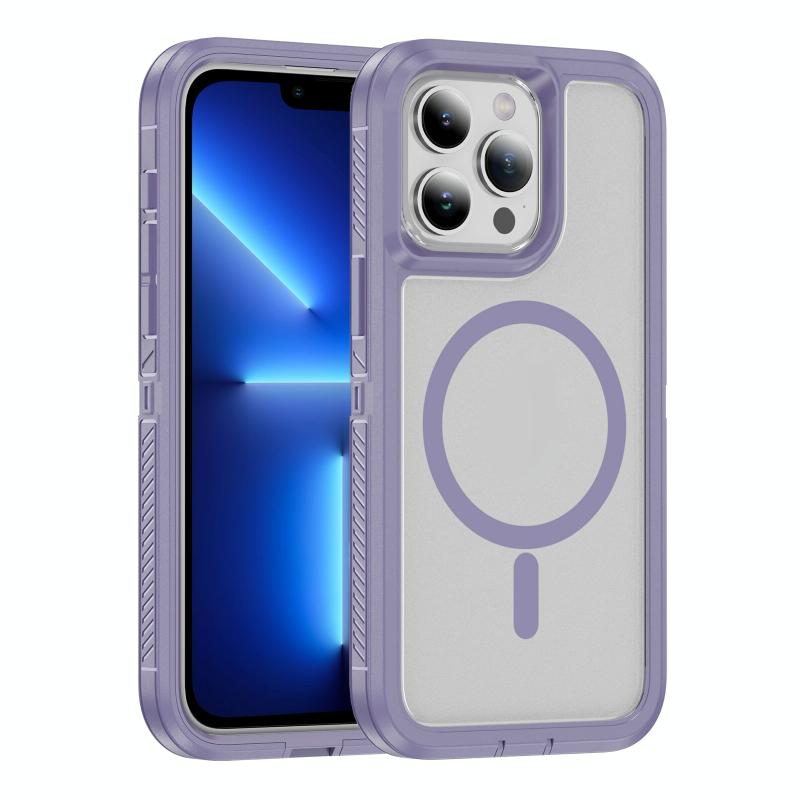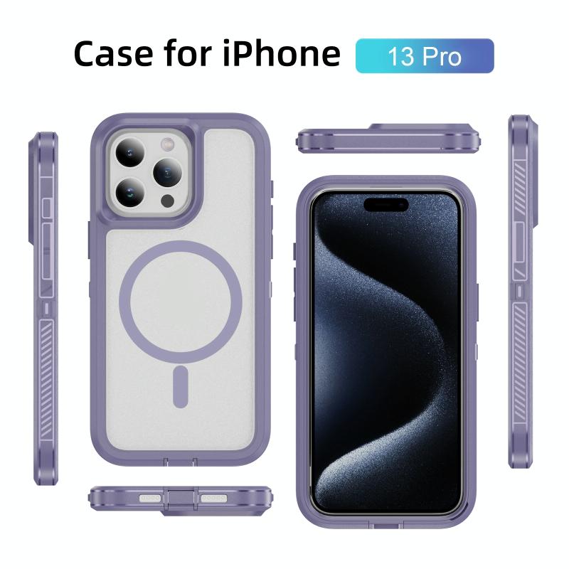 For iPhone 13 Pro Guard Magsafe Magnetic Ring Matte Phone Case(Light Purple)