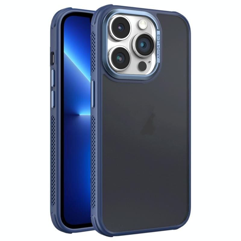 Θήκη τηλεφώνου για iPhone 13 Pro με ψύξη υλικού, αίσθηση δέρματος, μεταλλική αφή με παγωμένο φινίρισμα και πλαίσιο φακού (Μπλε)