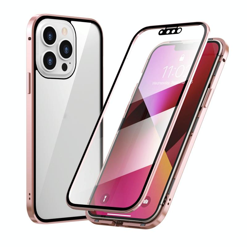 For iPhone 13 Pro HD Magnetic Metal Frame Double-sided Tempered Glass Phone Case (Pink)