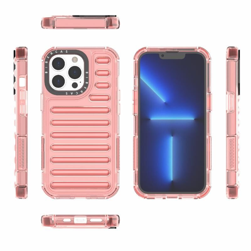 For iPhone 13 Pro High Transparency TPU Hybrid PC Airbag Phone Case(Pink)