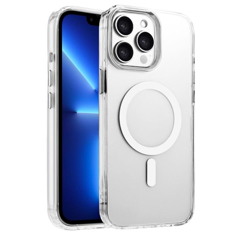 For iPhone 13 Pro High Transparency TPU Hybrid PC MagSafe Magnetic Phone Case(White)
