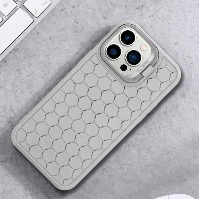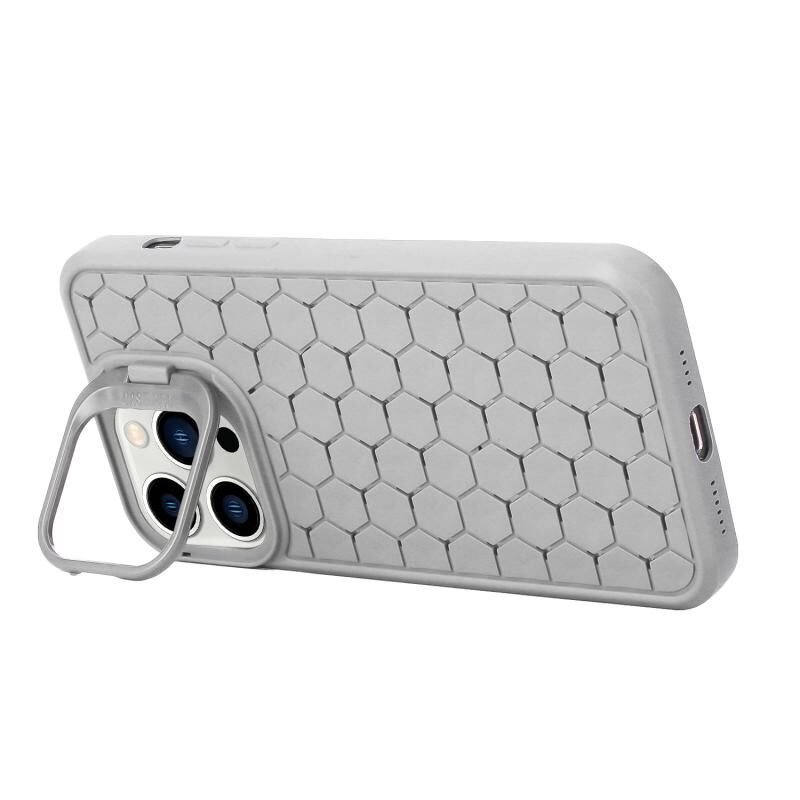 For iPhone 13 Pro Honeycomb Radiating Lens Holder TPU Phone Case(Grey)