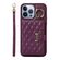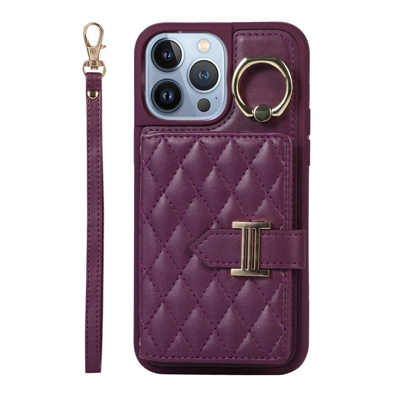 For iPhone 13 Pro Horizontal Card Bag Ring Holder Phone Case with Dual Lanyard(Dark Purple)