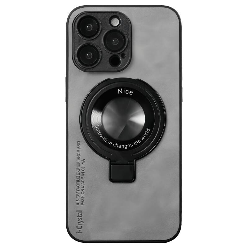 For iPhone 13 Pro i.Crystal Lambskin Fulcrum Support Phone Case(Light Grey)