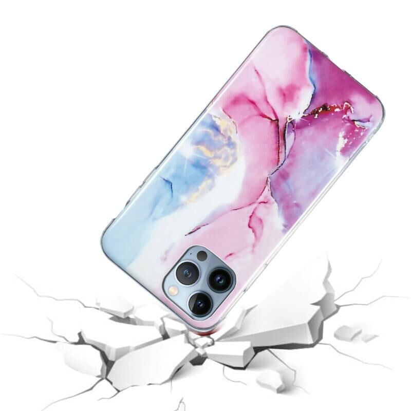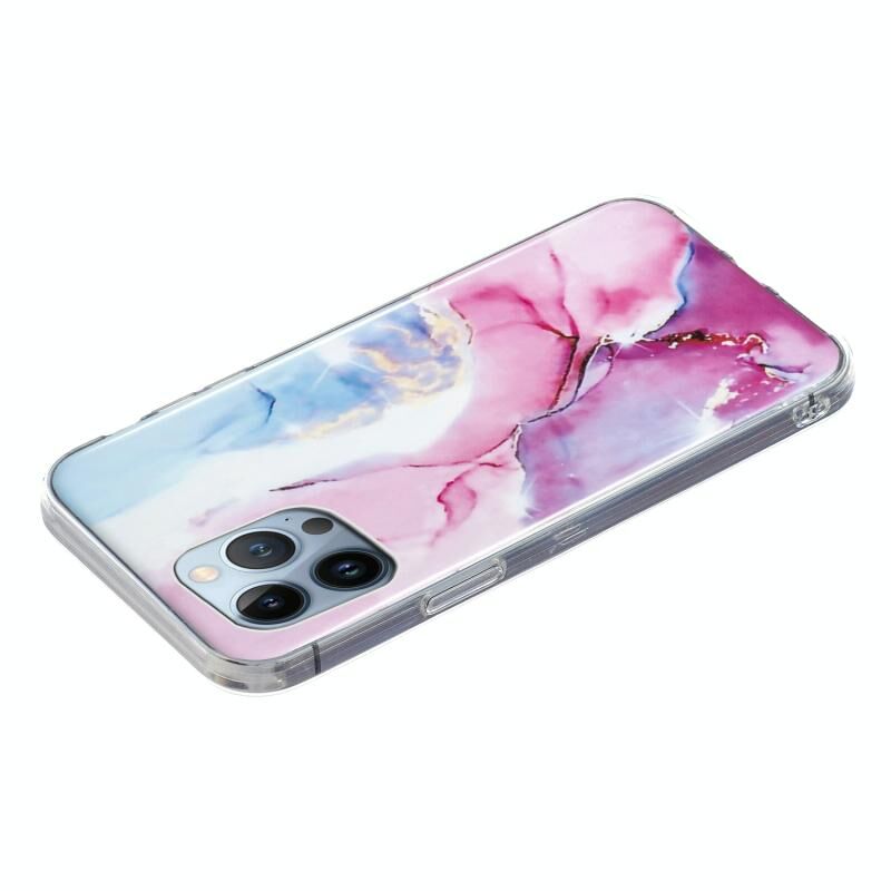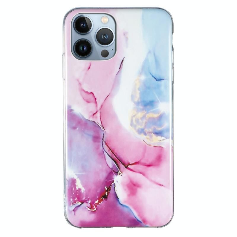 For iPhone 13 Pro IMD Marble Pattern TPU Phone Case (Pink Blue)