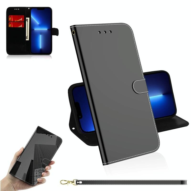 For iPhone 13 Pro Imitated Mirror Surface Horizontal Flip Leather Case with Holder & Card Slots & Wallet & Lanyard (Black)