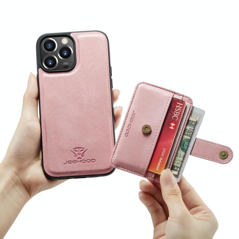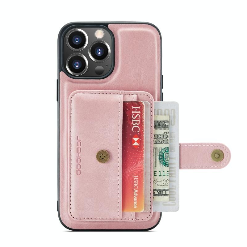 For iPhone 13 Pro JEEHOOD Anti-theft Brush Magnetic PU + TPU Protective Case with Card Slot (Pink) (JEEHOOD)
