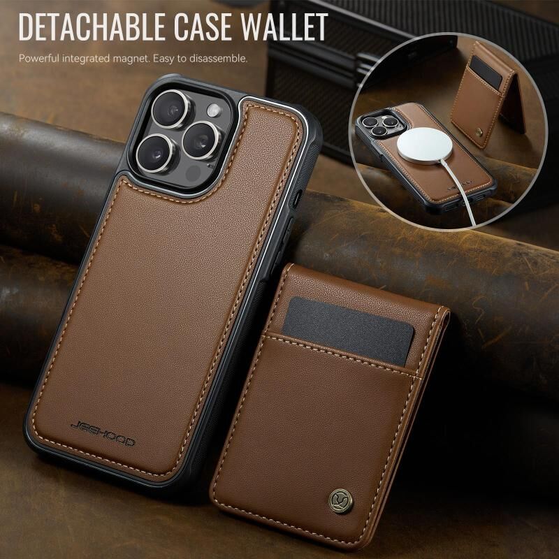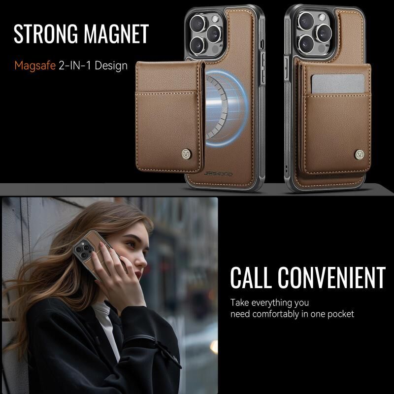 For iPhone 13 Pro JEEHOOD J06 British Style RFID MagSafe Card Bag PU Phone Case(Brown) (JEEHOOD)