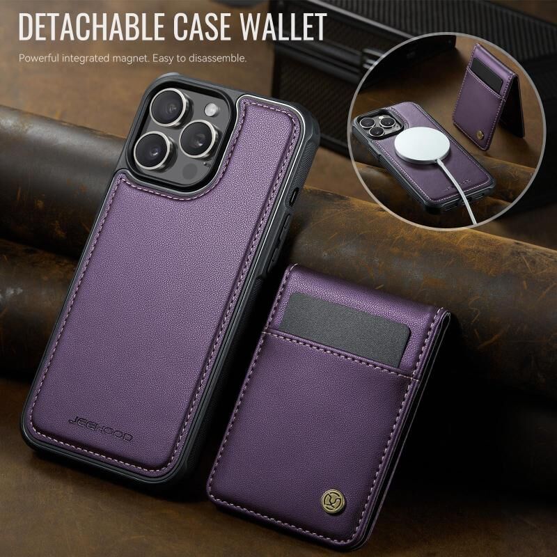 For iPhone 13 Pro JEEHOOD J06 British Style RFID MagSafe Card Bag PU Phone Case(Purple) (JEEHOOD)