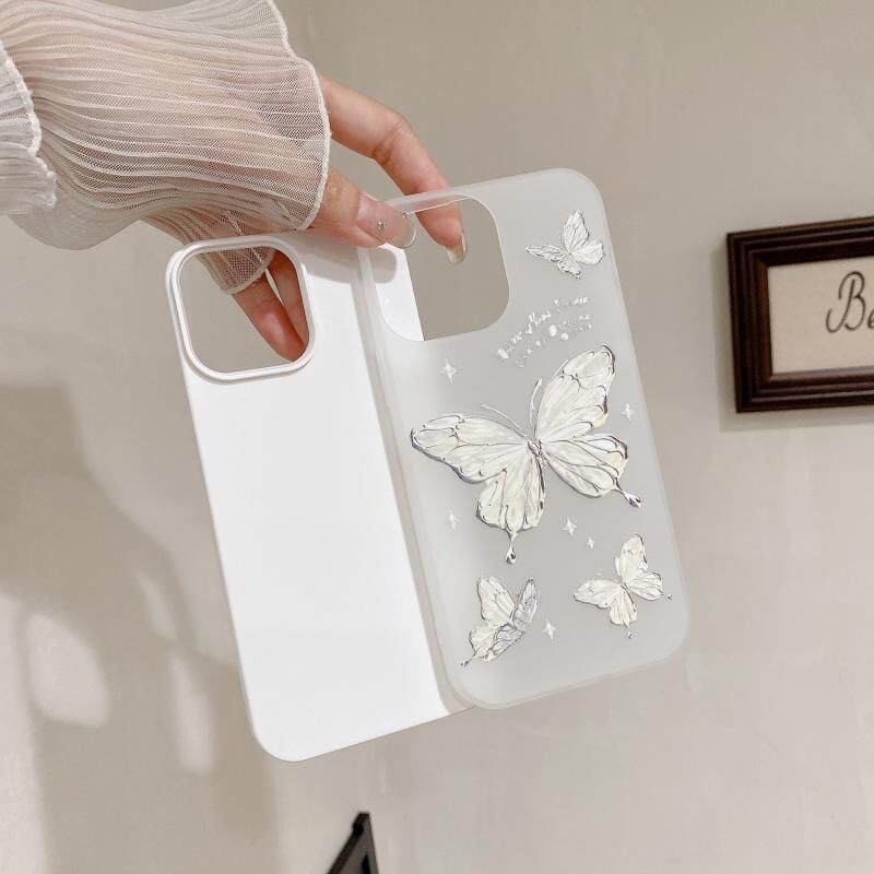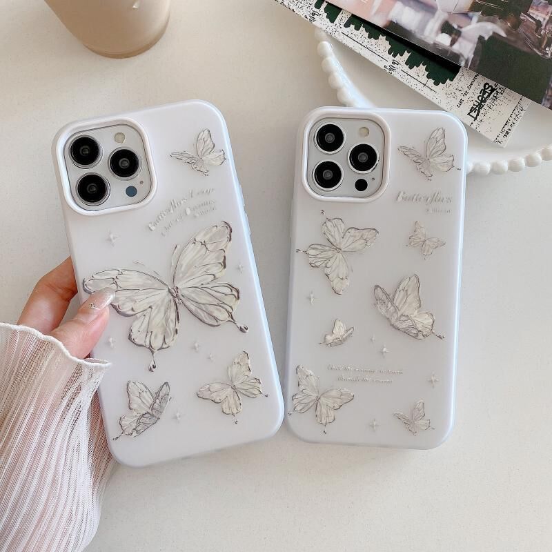 For iPhone 13 Pro Jelly 2 in 1 TPU Hybrid PC Phone Case(Silver Butterflies)