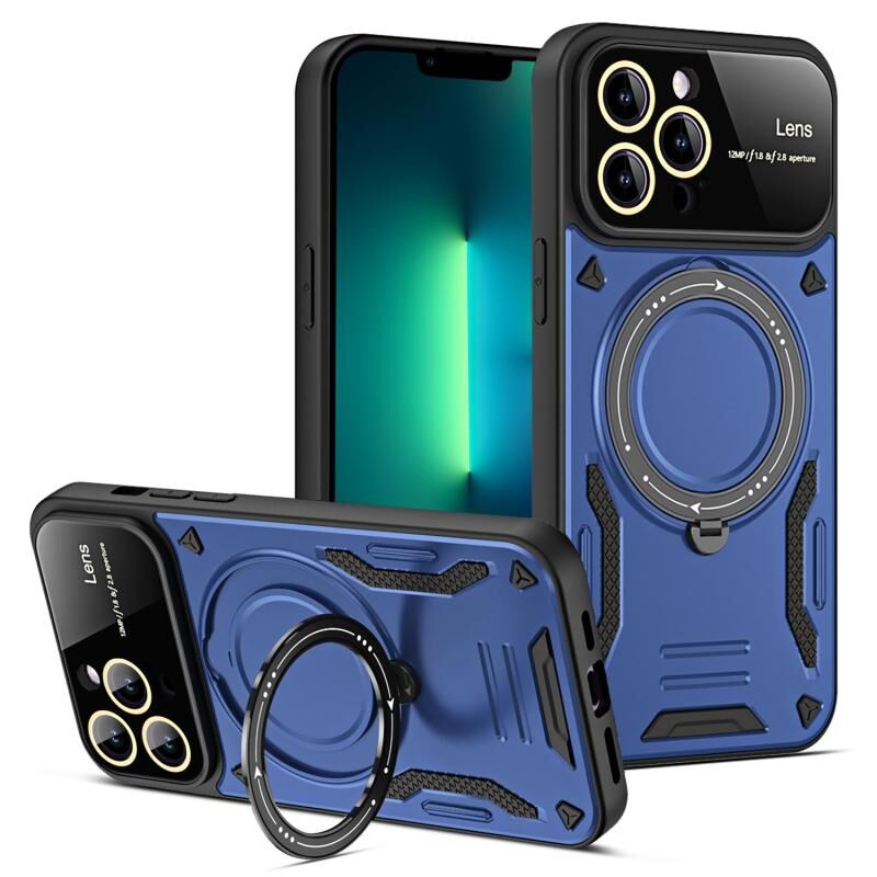 For iPhone 13 Pro Large Window MagSafe Holder Phone Case(Blue)