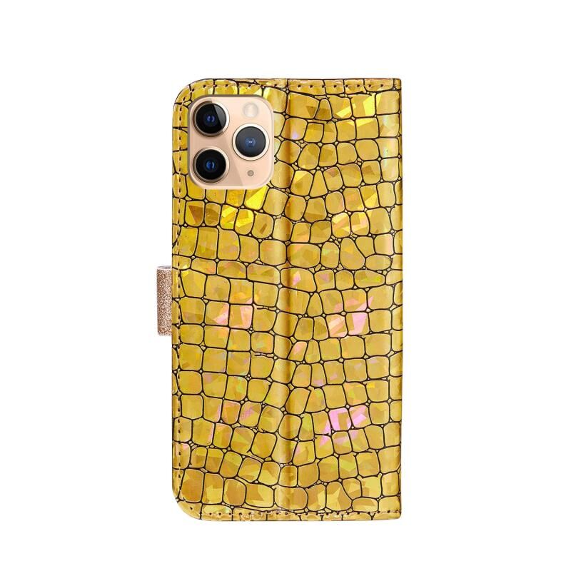 For iPhone 13 Pro Laser Glitter Powder Matching Crocodile Texture Horizontal Flip Leather Case with Card Slots & Holder & Wallet (Gold)