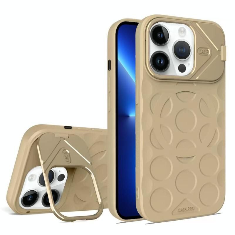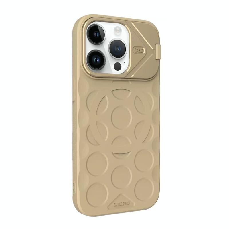 For iPhone 13 Pro Lens Frame Holder MagSafe PC Hybrid TPU Phone Case(Desert Gold)