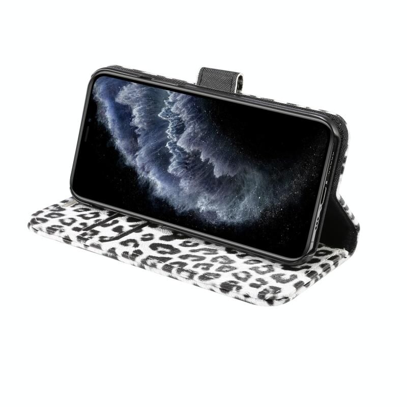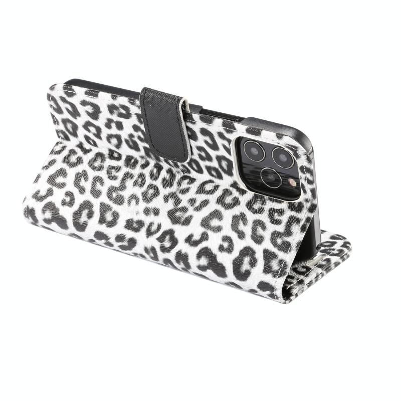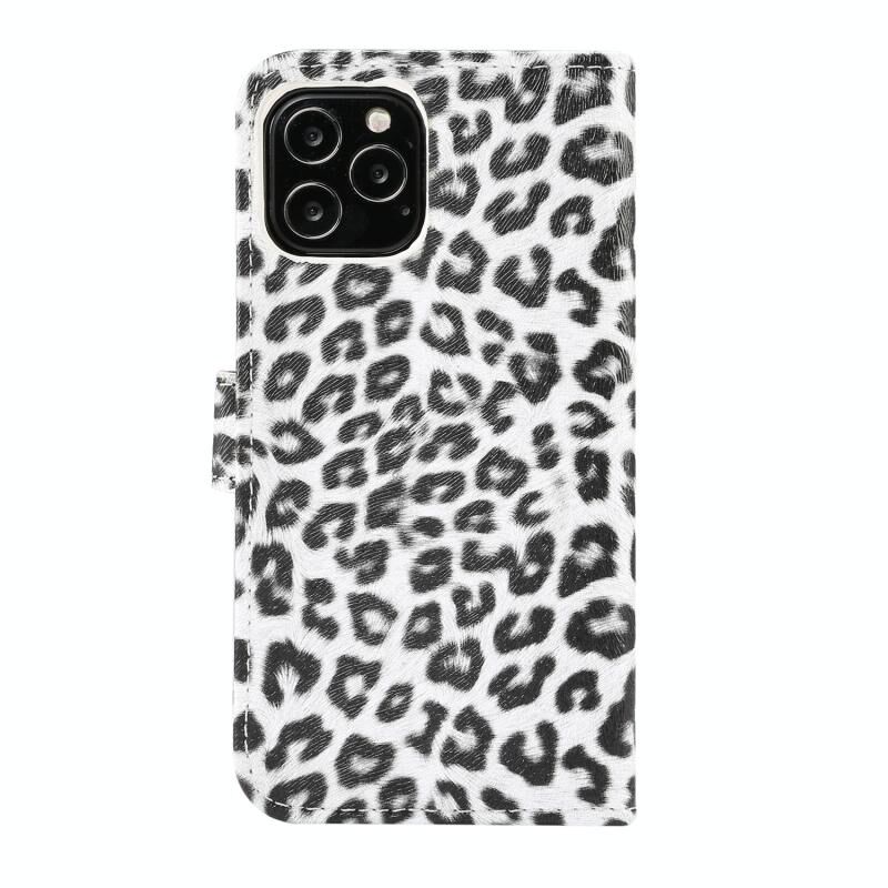 For iPhone 13 Pro Leopard Pattern Horizontal Flip PC + PU Leather Case with Holder & Card Slots & Wallet (White)
