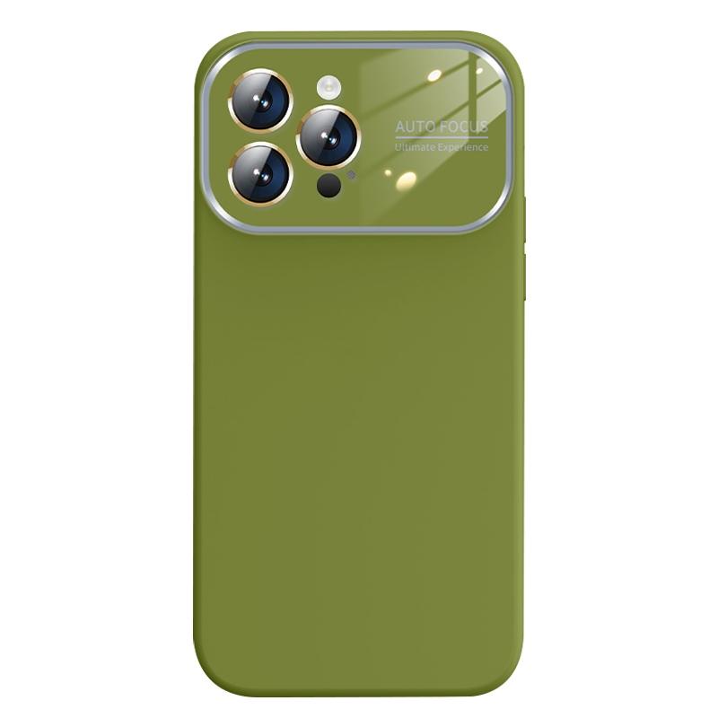 For iPhone 13 Pro Liquid Silicone Large Glass Window Phone Case(Green)
