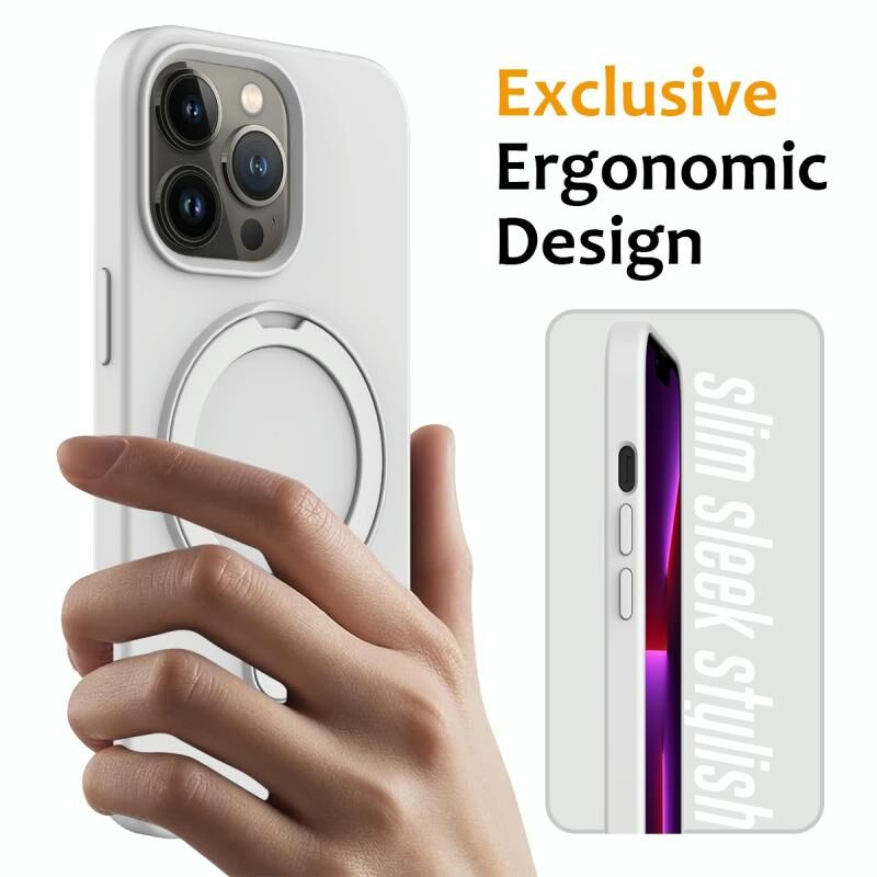 Θήκη τηλεφώνου με μαγνητική σύνδεση MagSafe από υγρή σιλικόνη για iPhone 13 Pro με δακτύλιο στήριξης (Λευκό)